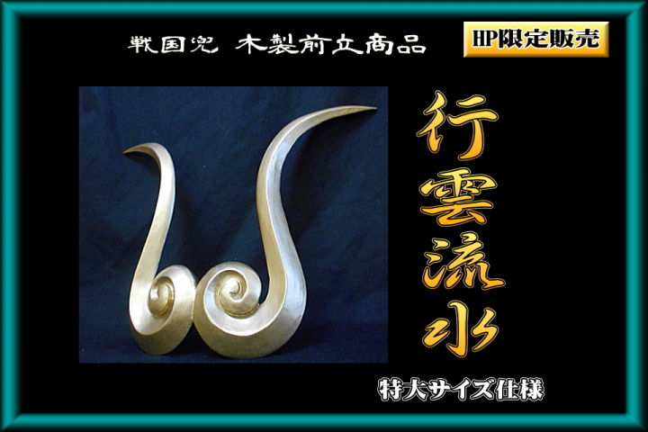 戦国時代に活躍した武将タイプ、睨みをきかせた獅噛タイプ、龍や鳳凰などの神獣タイプの他に、落札者様がご所持の兜に取り付けた取付例など、多種多様の前立作品を掲載しております